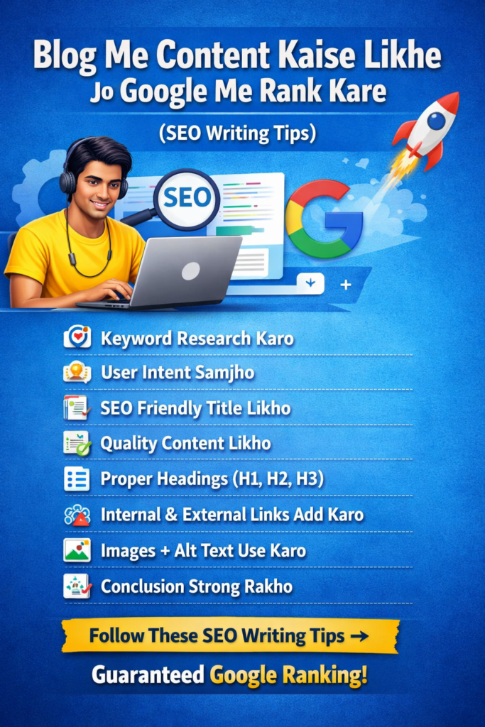 Blog Me Content Kaise Likhe Jo Google Me Rank Kare β SEO Writing Tips 2026